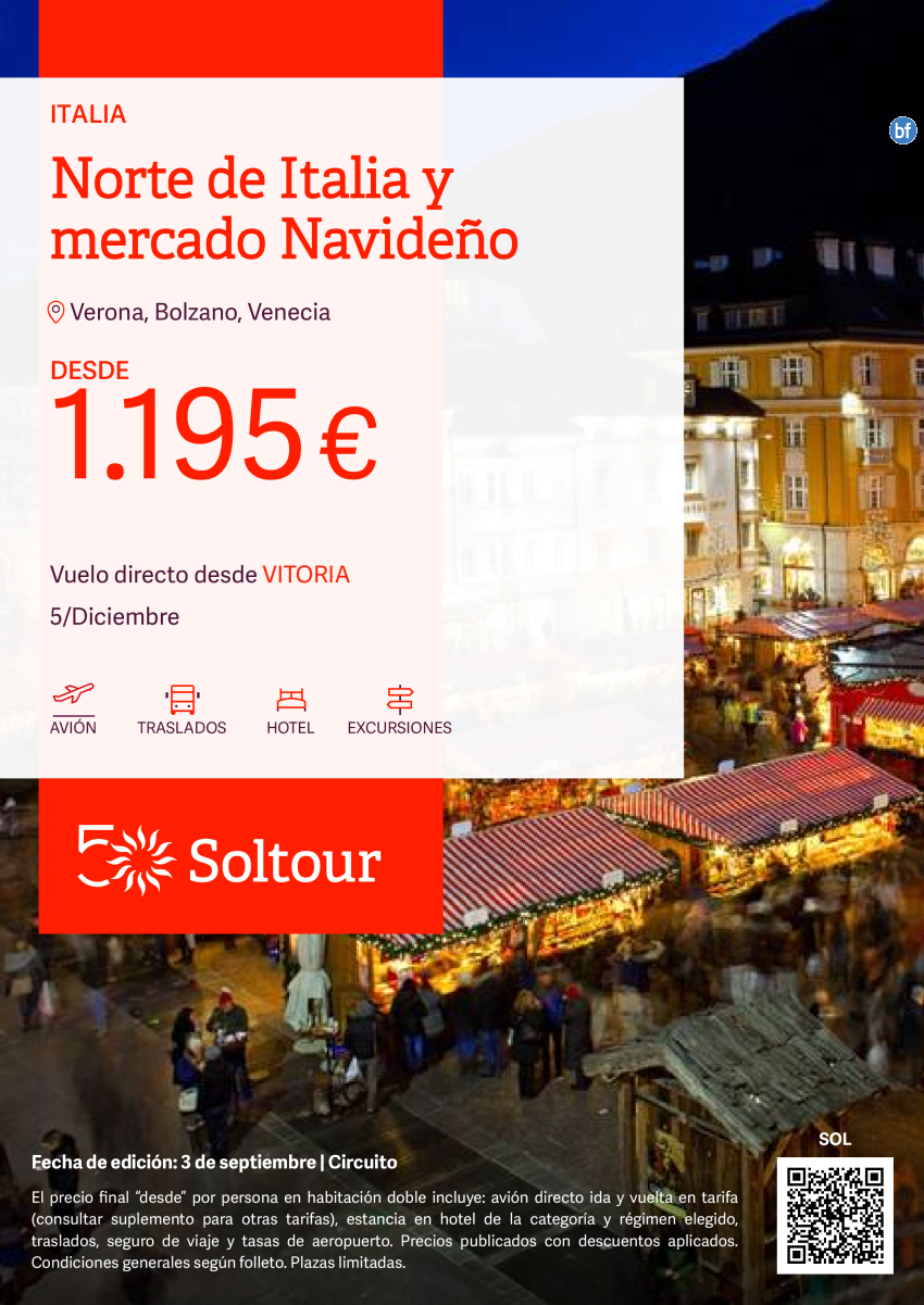 Norte de Italia y mercado Navideño - Puente de Diciembre desde 1.195€, salida 5 Diciembre desde Vitoria