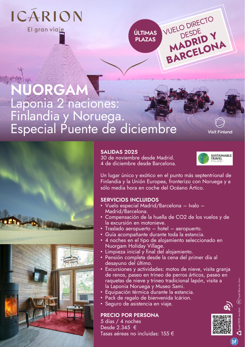 Especial Puente de Diciembre en Nuorgam. Últimas plazas. Vuelo directo desde Madrid y Barcelona
